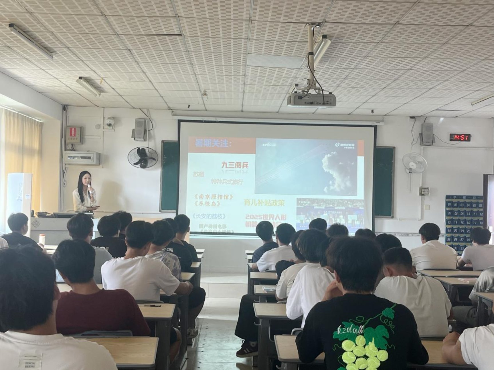 为纪念中国人民抗日战争暨世界反法西斯战争胜利80周年,融入93阅兵育人元素,马克思主义学院组织教师开展开学第一课专题授课。授课内容紧扣此次纪念活动“铭记历史、缅怀先烈、珍爱和平、开创未来”主题,通过理论阐释、影像教学、互动研讨等多元形式,引导青年学生从历史中汲取精神力量,在新时代新征程上传承伟大抗战精神,赓续红色血脉。