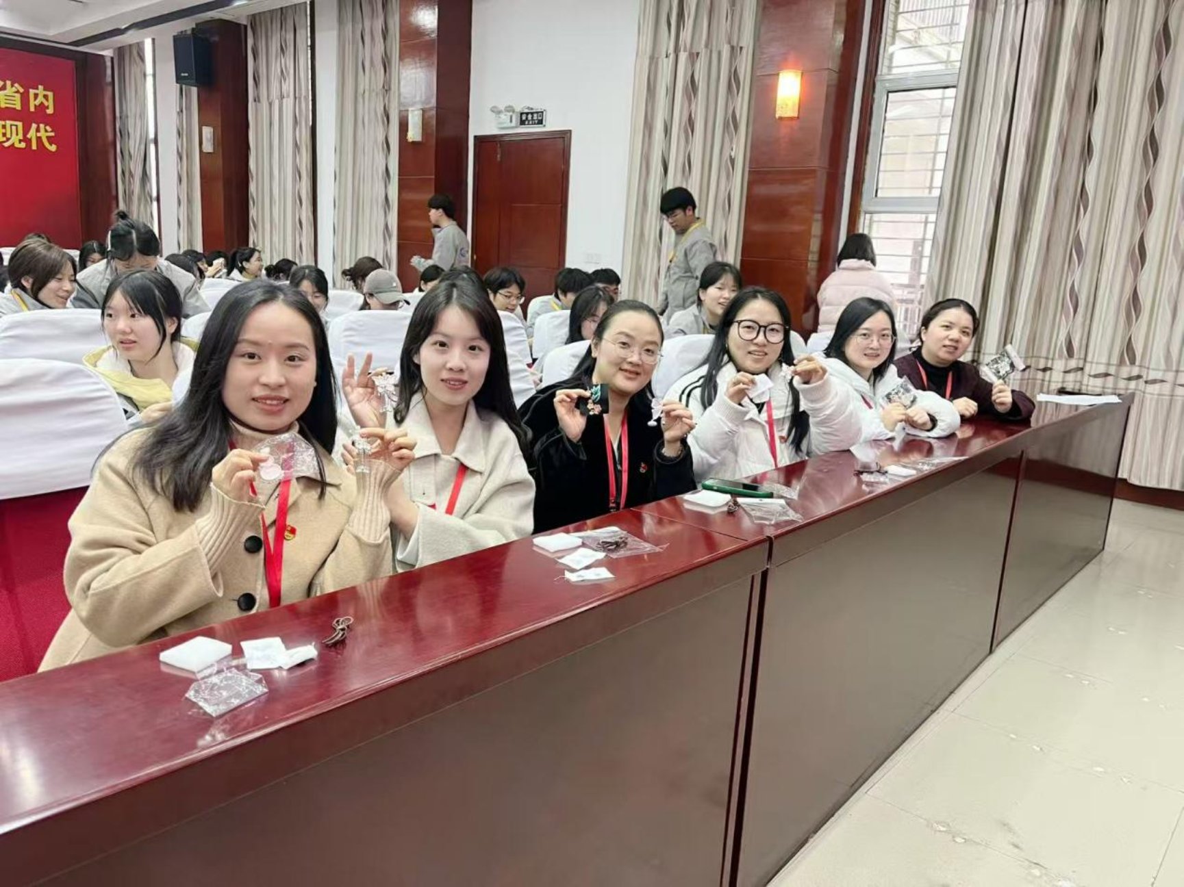 在制作体验环节,思政课教师与青马班学员在苗绣非遗传承人的指导下学习针法,尝试将苗族传统纹样与冰箱贴、毛衣链等当代年轻人喜爱的日常文创载体相结合。思政课教师适时引导,启发学生思考苗绣与时尚文创的巧妙融合,正是推动中华优秀传统文化创造性转化、创新性发展的生动体现。
